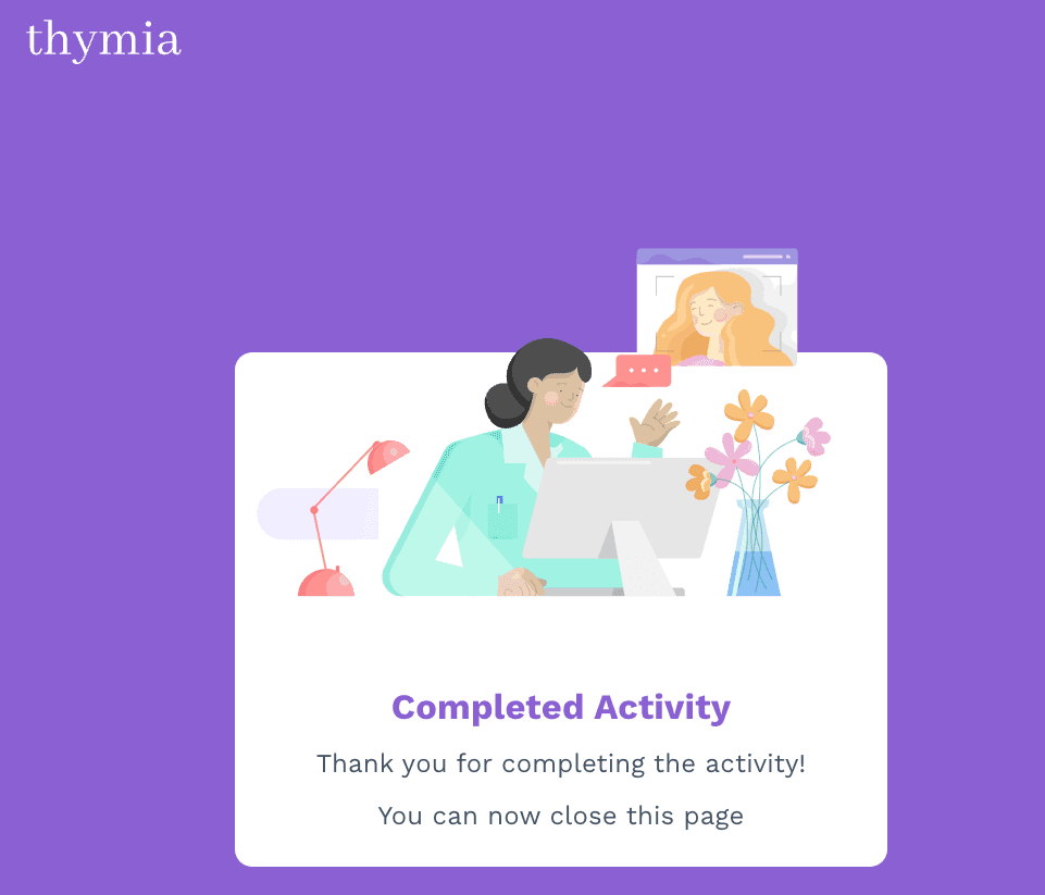 This is what your users would see when using the Thymia Activity Widget. Click Start and you'll be taken to some checks to test your device's ability to capture audio or video. Once you complete the checks you'll be presented with a simple activity that you can perform.